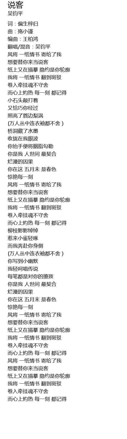 | [00:08.937] | 翻唱/混音:吴钧平 |