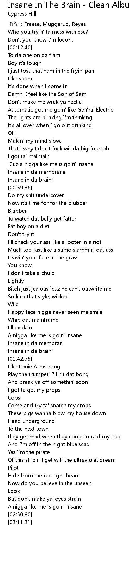 | 歌曲 | Insane In The Brain - Clean Album Version |