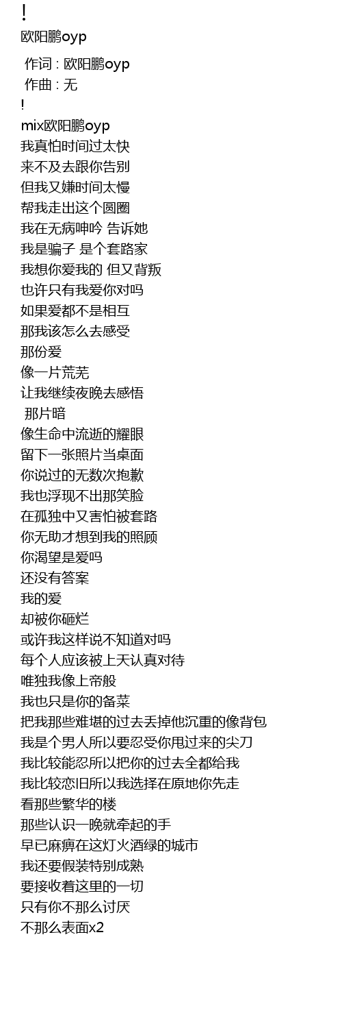 | [00:00.00] | 作词 : 欧阳鹏oyp |