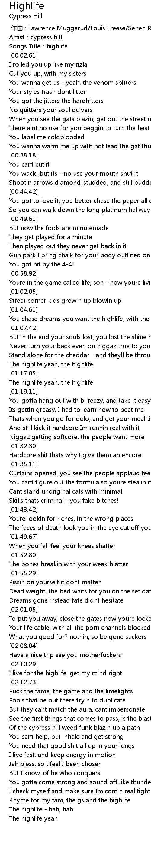 | [02:26.92] | Rhyme for my fam, the gs and the highlife |