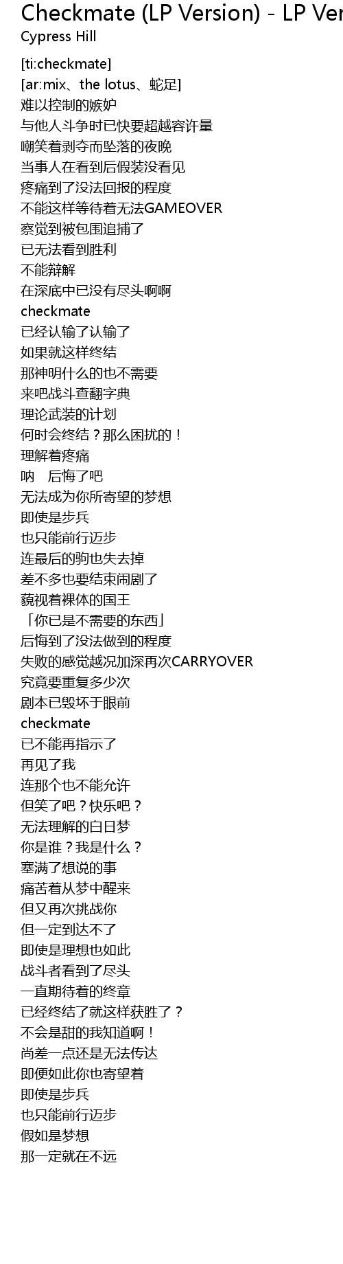 | 歌曲 | Checkmate (LP Version) - LP Version |