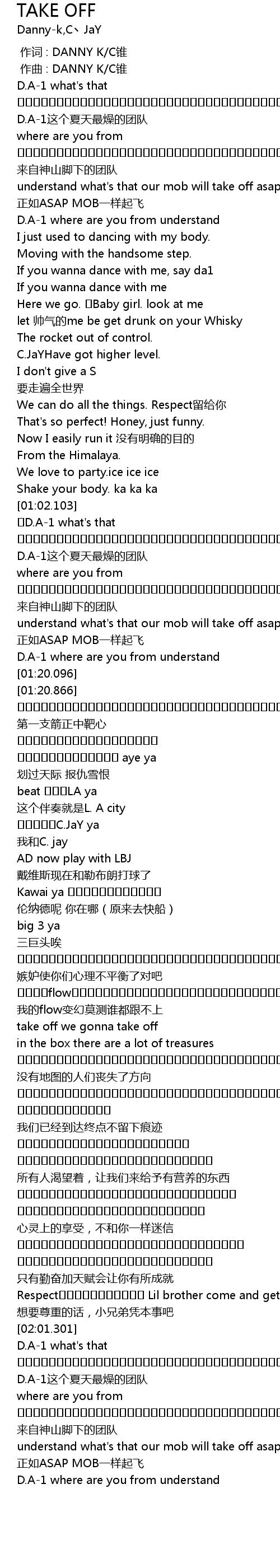 | [01:16.189] | 正如ASAP MOB一样起飞 |