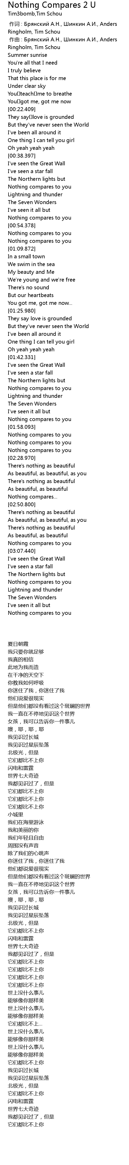 | [02:11.178] | Nothing compares to you |