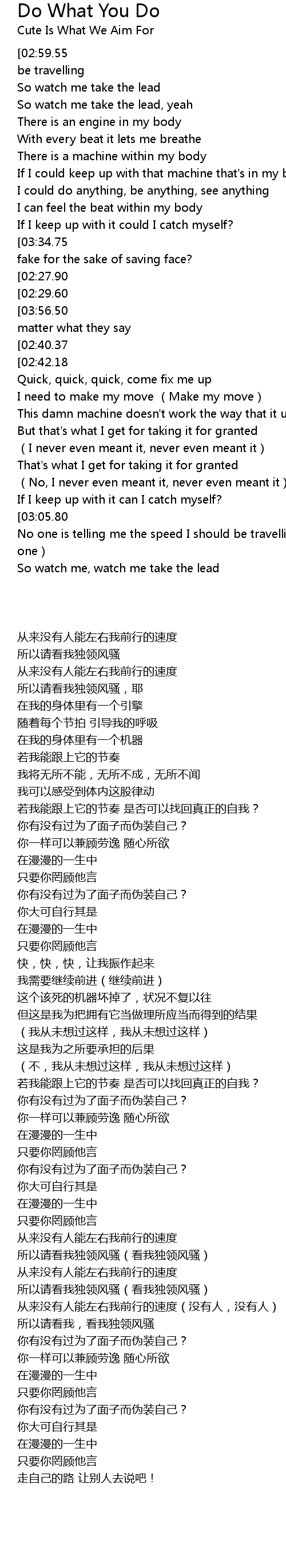 | [03:18.50][03:05.80] | So watch me take the lead Watch me take the lead |