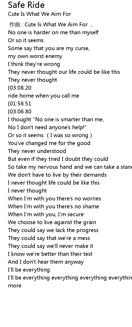 | [03:21.15][03:08.20][02:55.15][01:50.50][01:37.05][00:45.55] | I' ll be your safe ride home when you call me |