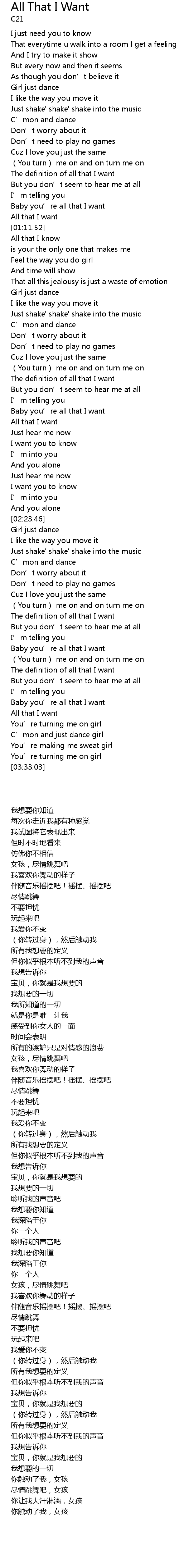 | [03:15.64] | All that I want |