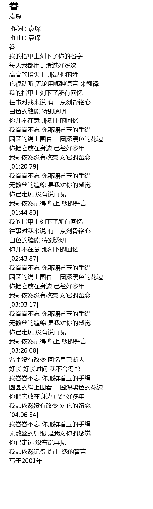 | [03:04.07] | 我眷眷不忘 你那镶着玉的手绢 |