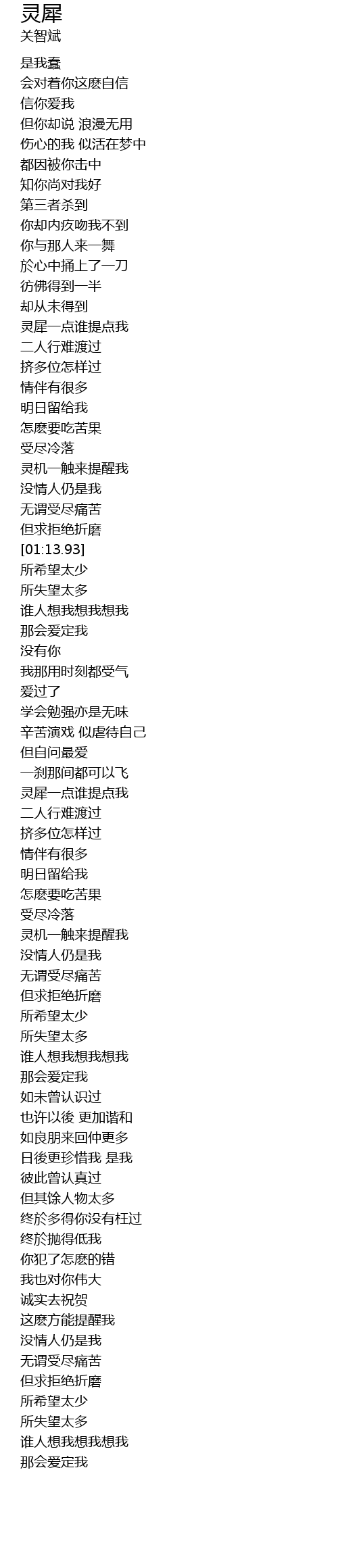 | [00:46.10] | líng xī yì diǎn shuí tí diǎn wǒ |