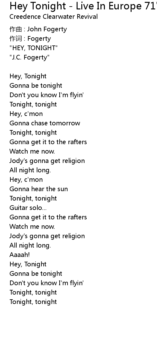 | 歌曲 | Hey Tonight - Live In Europe 71' |