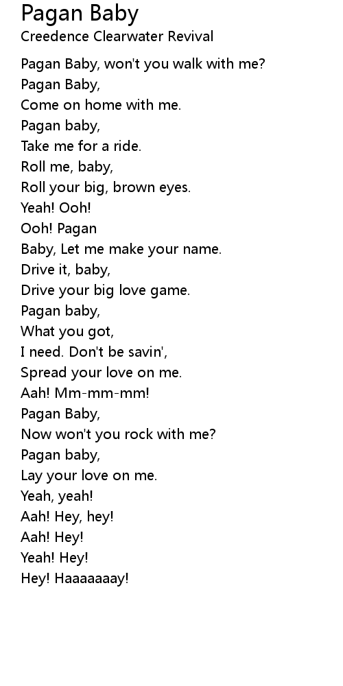 | Pagan Baby, won't you walk with me? | |