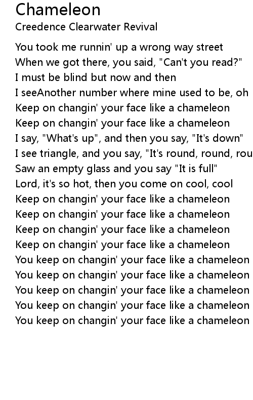 Keep on changin' your face like a chameleon |