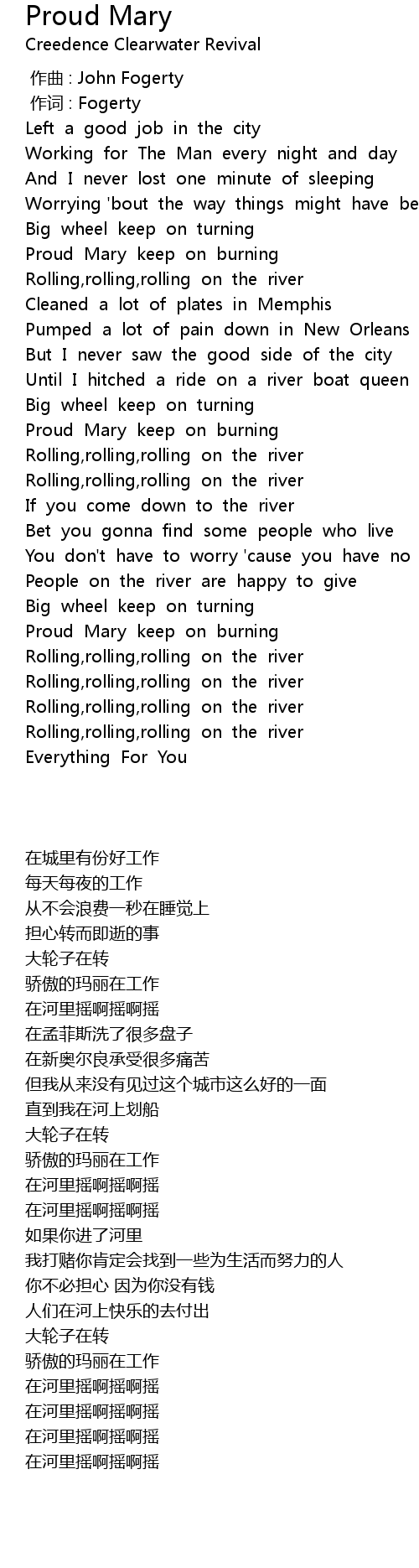 | [02:51.35] | Rolling,rolling,rolling on the river |