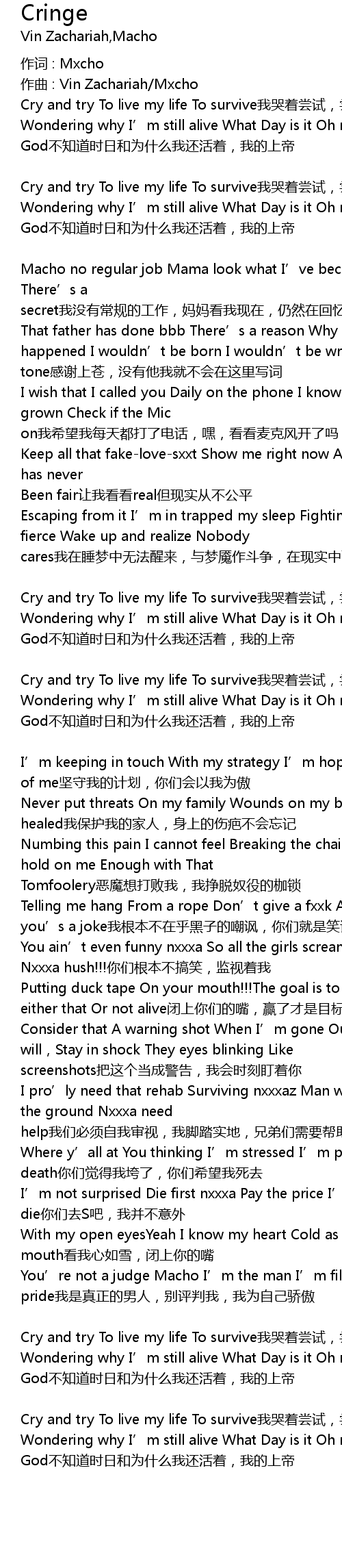 | 歌曲 | Cringe |