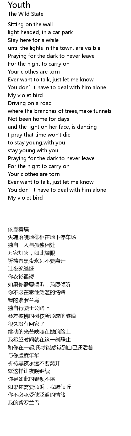 | [01:16.88] | My violet bird |