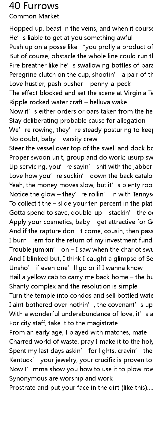 | And if the rapture don’t come, cousin, then pass the guns | |