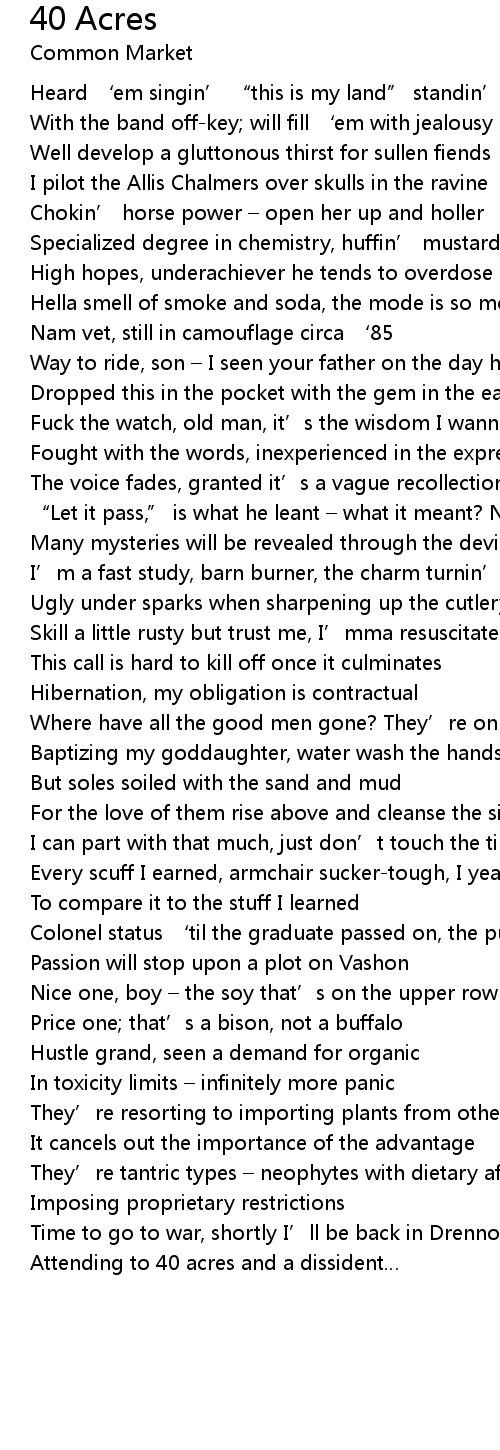 | 歌曲 | 40 Acres |