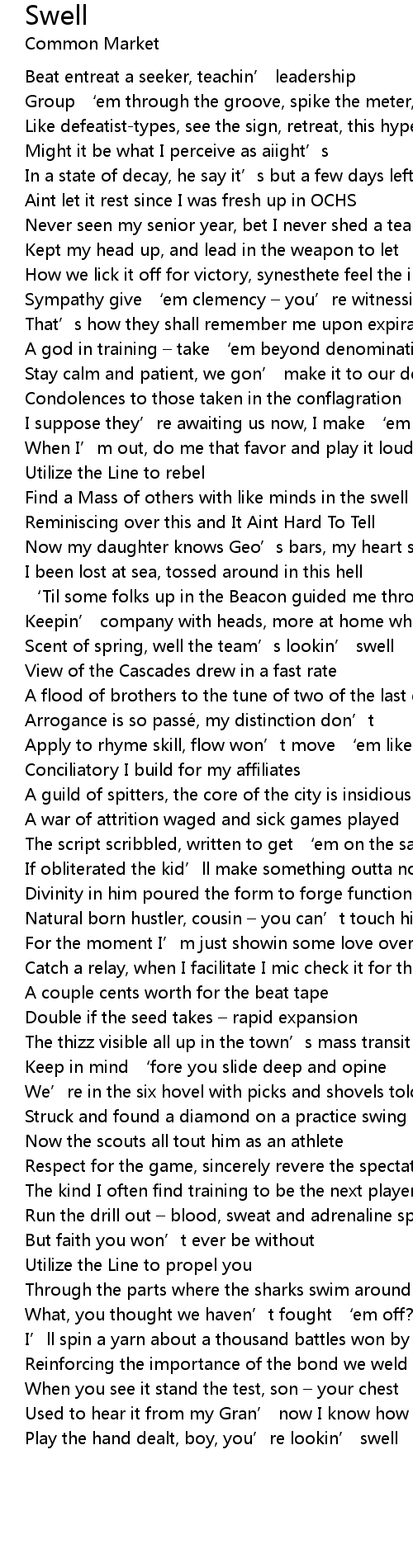 | I’ll spin a yarn about a thousand battles won by the swell | |