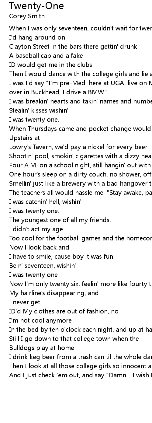 When I was only seventeen, couldn't wait for twenty one |