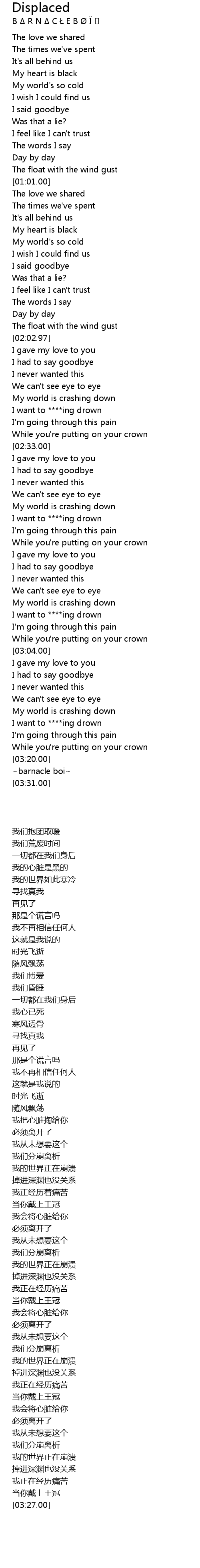 Displaced 歌词