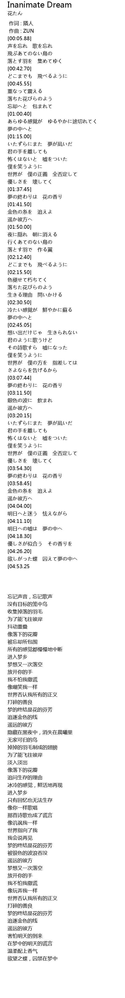 | [04:26.45] | 欲しがった蝶 囚えて夢の中へ |