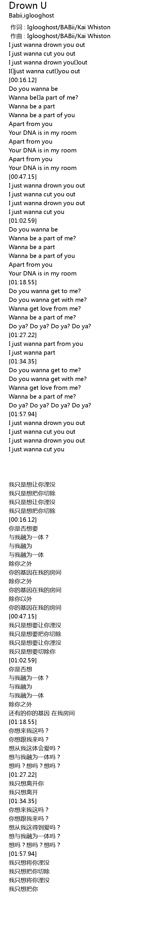 | [00:00.92] | zuò qǔ : Iglooghost BABii Kai Whiston |