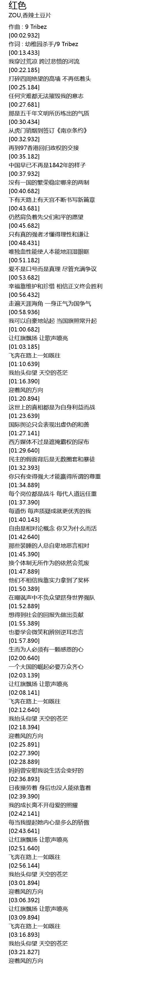 | [02:03.392] | ràng hóng qí piāo yáng ràng gē shēng liáo liàng |