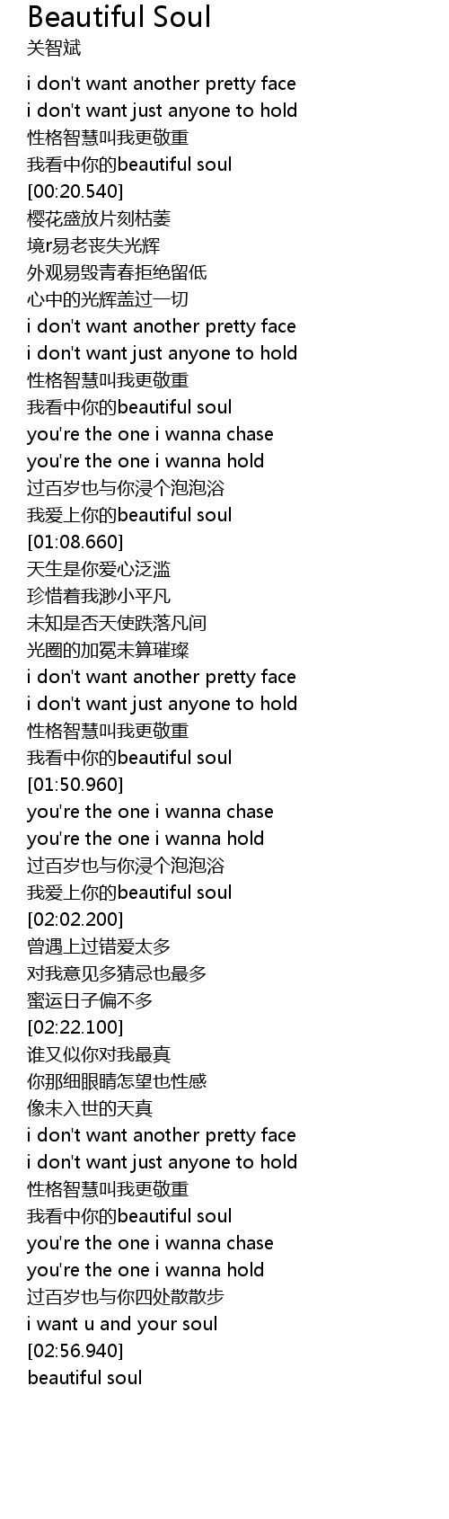| [00:55.150] | wo kan zhong ni de beautiful soul |