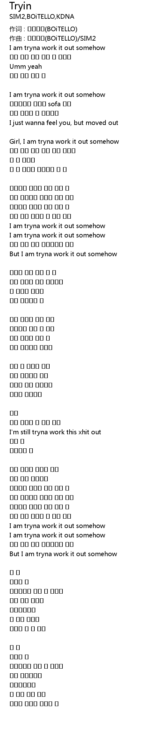 | But I am tryna work it out somehow | |