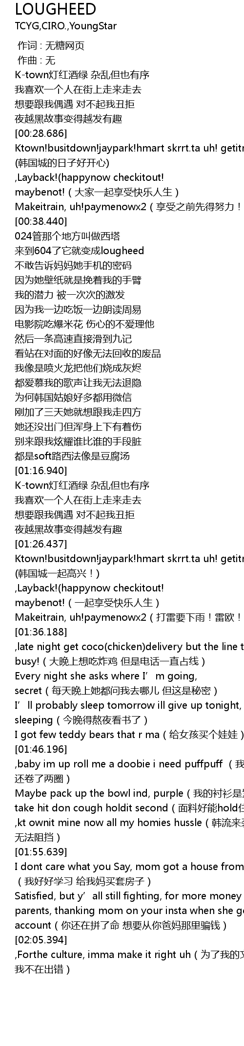 | [01:53.143] | , kt ownit mine now all my homies hussle han liu lai xi wu fa zu dang |