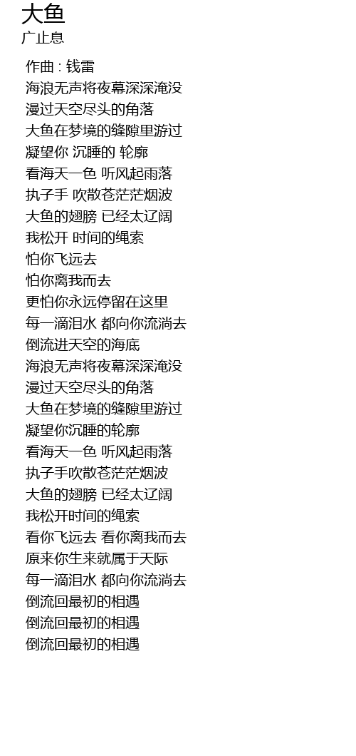 | [02:46.017] | 大鱼的翅膀 已经太辽阔 |