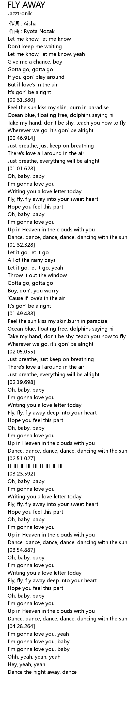 | [03:32.611] | Fly, fly, fly away into your sweet heart |