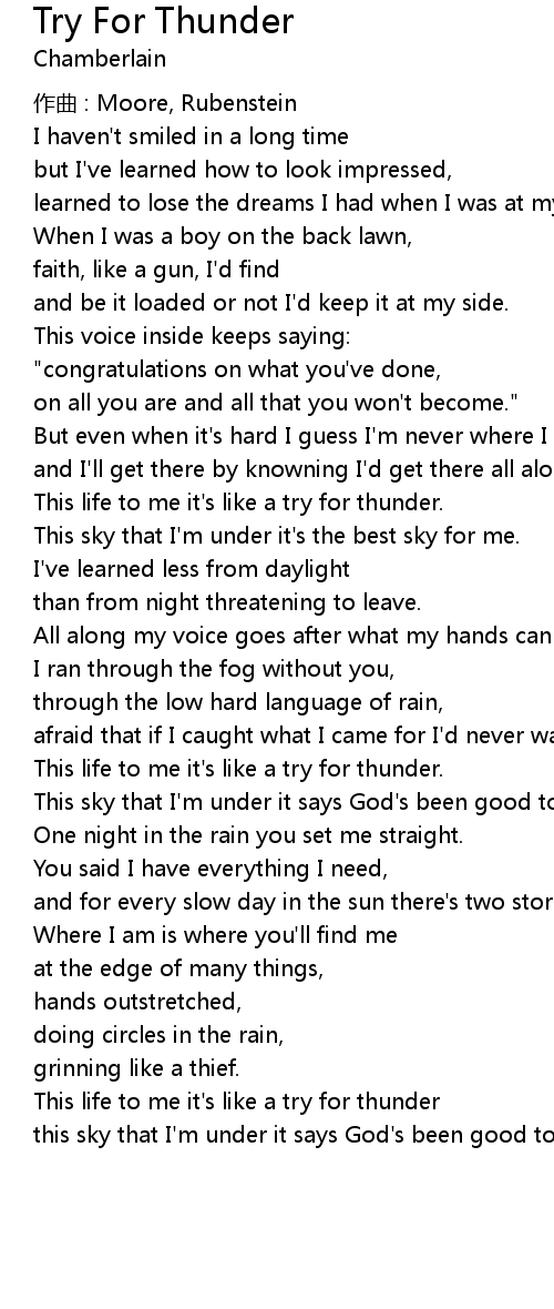 | This life to me it' s like a try for thunder | |