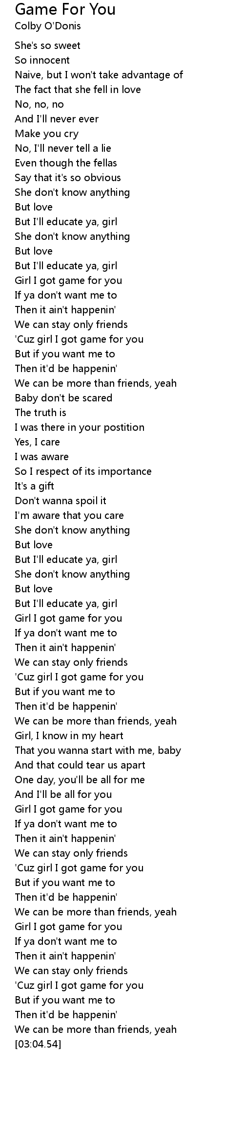 'Cuz girl I got game for you |