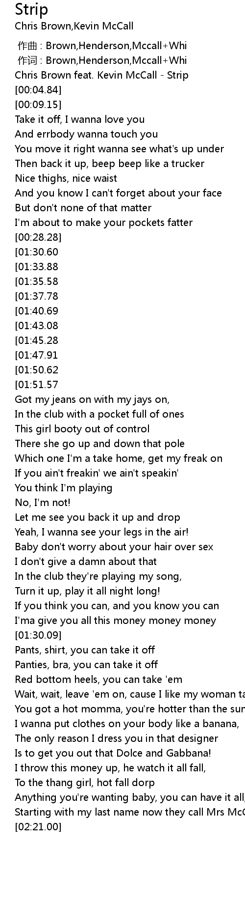 | [00:02.05] | Chris Brown feat. Kevin McCall Strip |