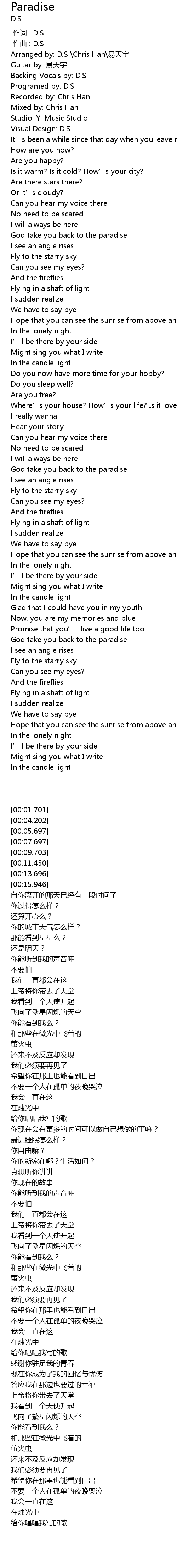 | [00:01.701] | Arranged by: D.S \Chris Han\易天宇 |