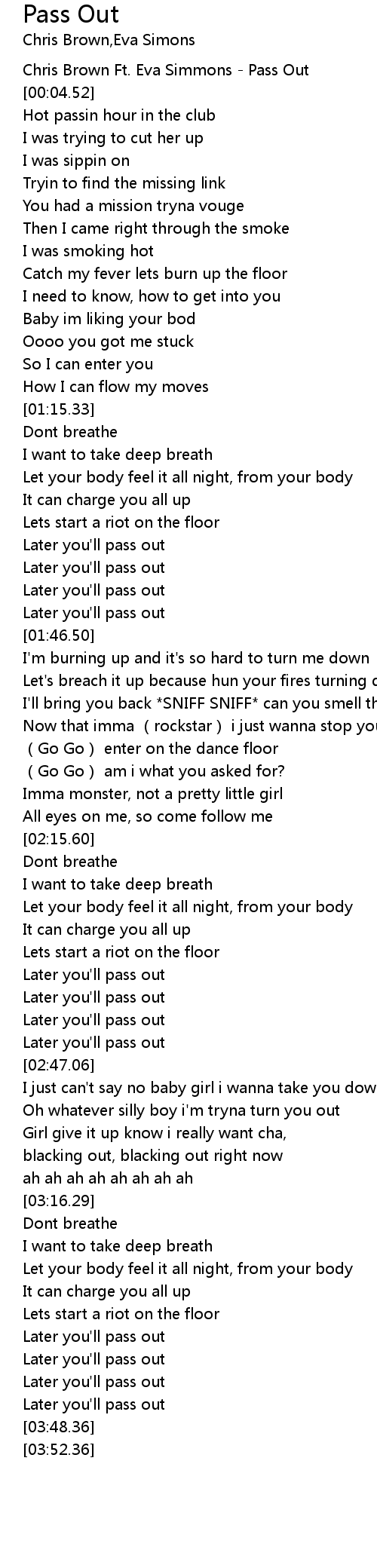 | [00:00.52] | Chris Brown Ft. Eva Simmons Pass Out |