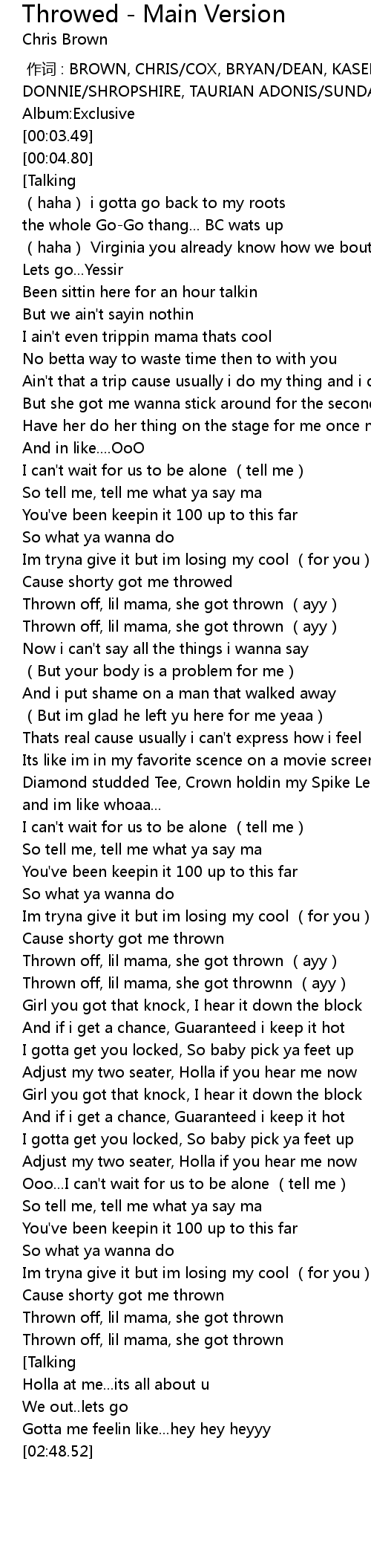 | [02:27.29] | Thrown off, lil mama, she got thrown |