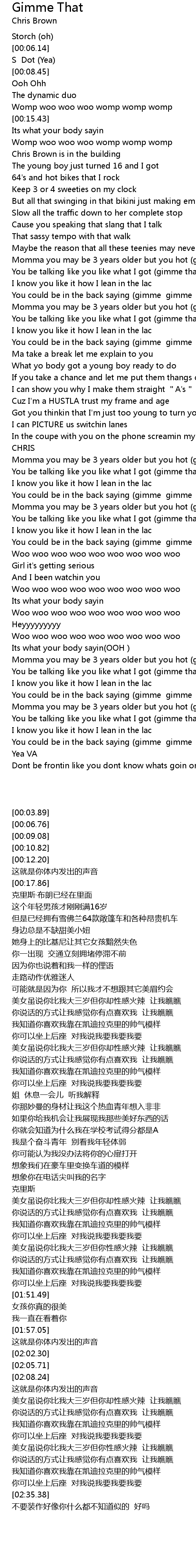 | [00:56.61] | Momma you may be 3 years older but you hot (gimme that) |