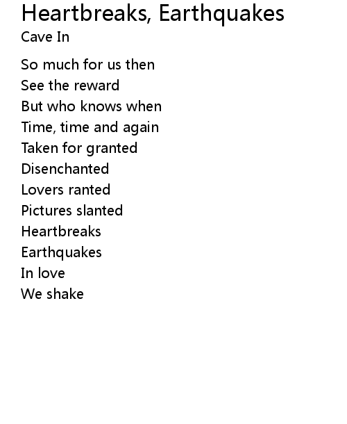 | 歌曲 | Heartbreaks, Earthquakes |