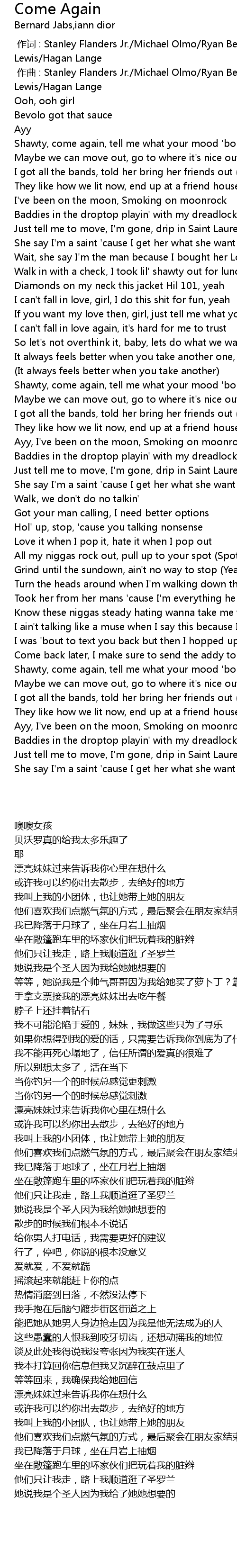 | [00:09.95] | Shawty, come again, tell me what your mood ' bout |
