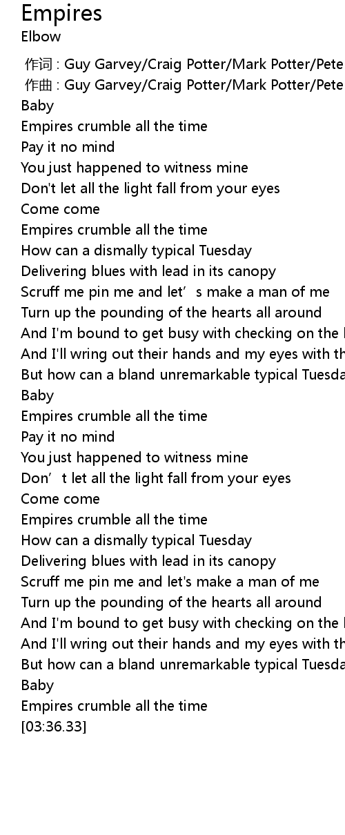 | [00:00.00] | 作词 : Guy Garvey/Craig Potter/Mark Potter/Pete Turner |