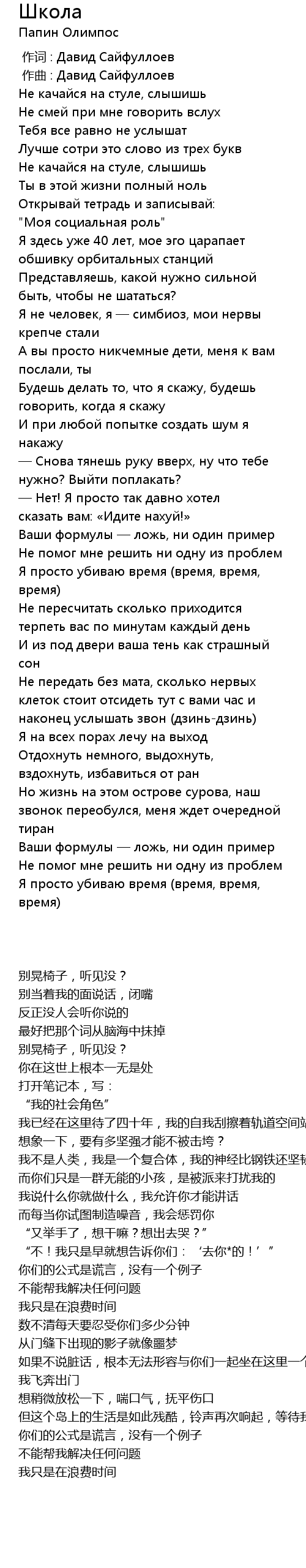 | 歌曲 | Школа |