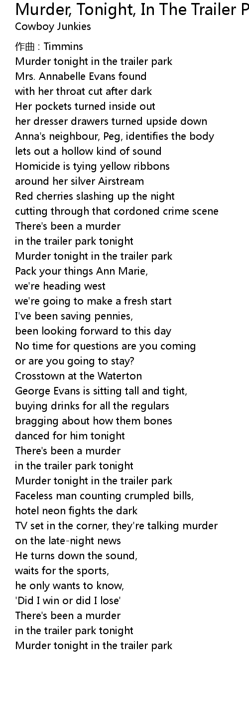 | 歌曲 | Murder, Tonight, In The Trailer Park |
