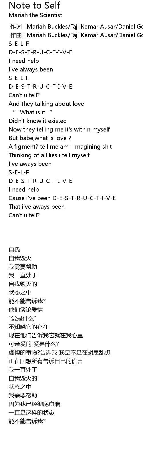 | 歌曲 | Note to Self |