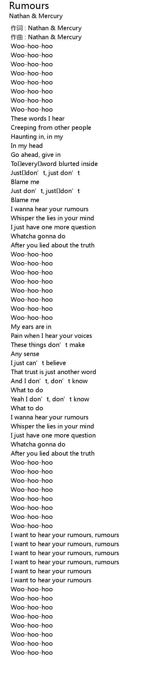 | [02:36.979] | I want to hear your rumours, rumours |