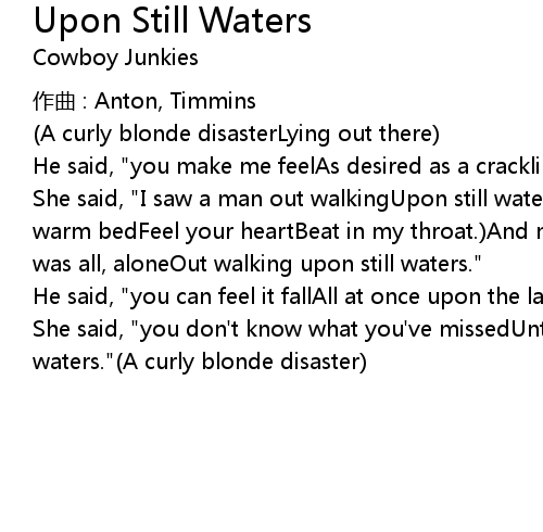 | She said, " I saw a man out walkingUpon still waters I want to lie beside youIn a warm bedFeel your heartBeat in my throat. And no one stopped to stareThere he was all, aloneOut walking upon still waters." | |