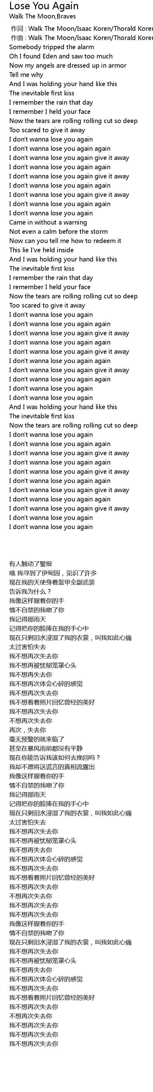 | [02:44.83] | I don' t wanna lose you again |