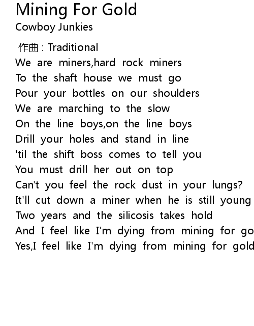 | [01:22.413] | Yes,I feel like I'm dying from mining for gold |