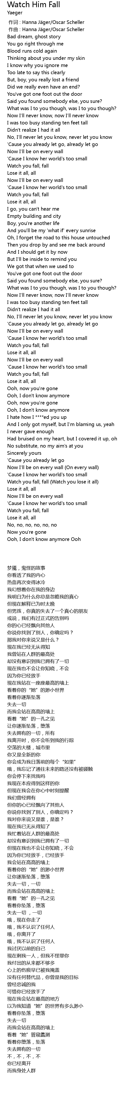 | 歌曲 | Watch Him Fall |