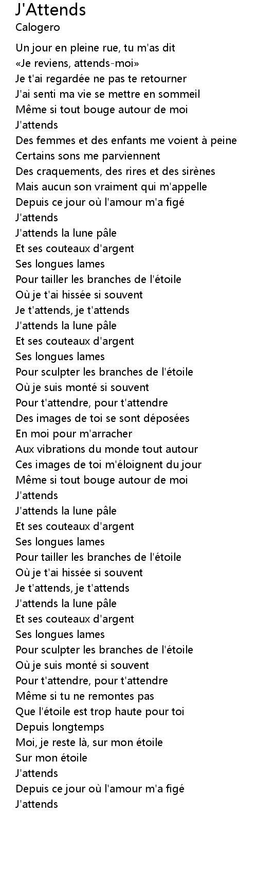 | Je t'attends, je t'attends | |